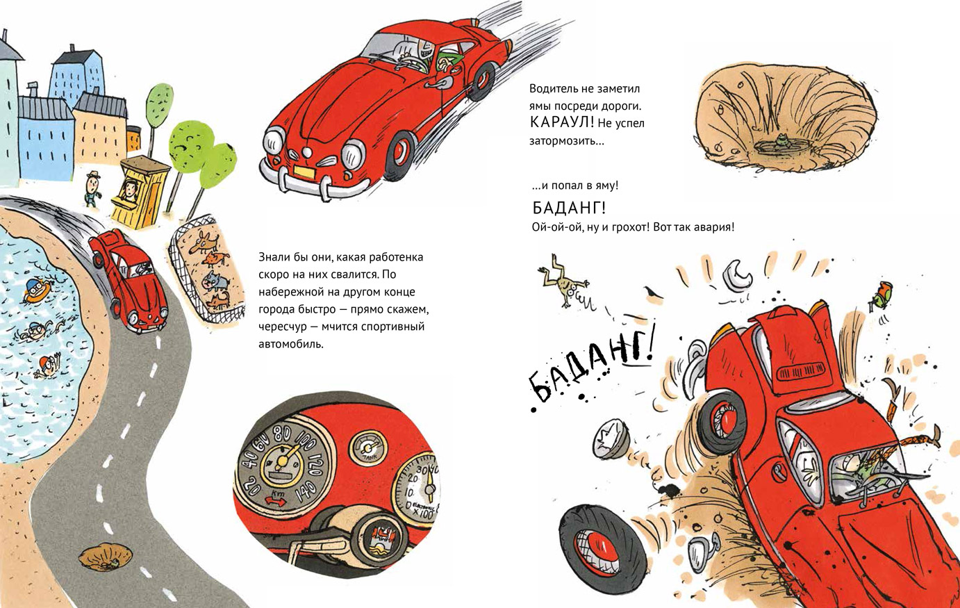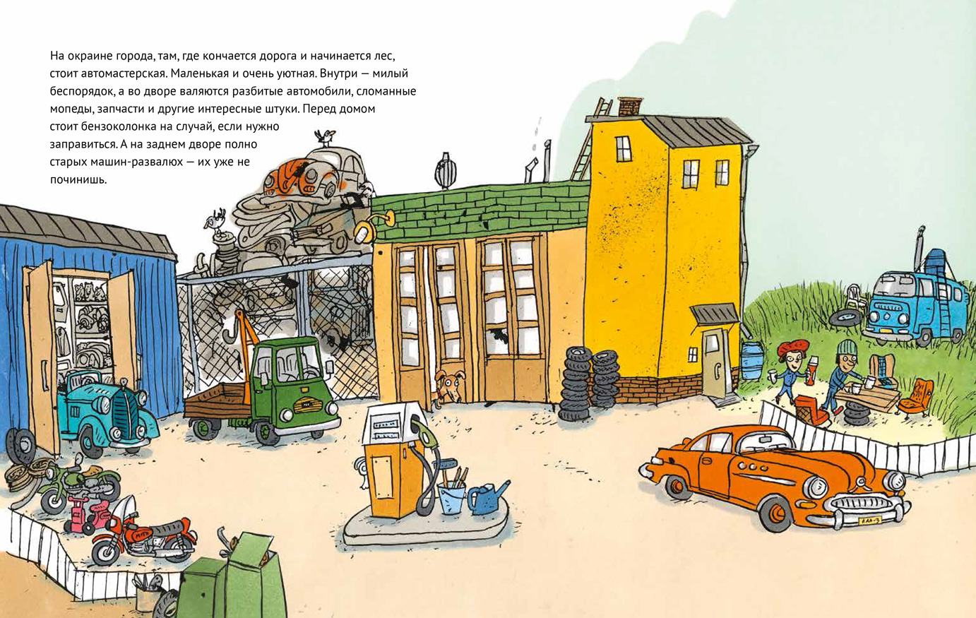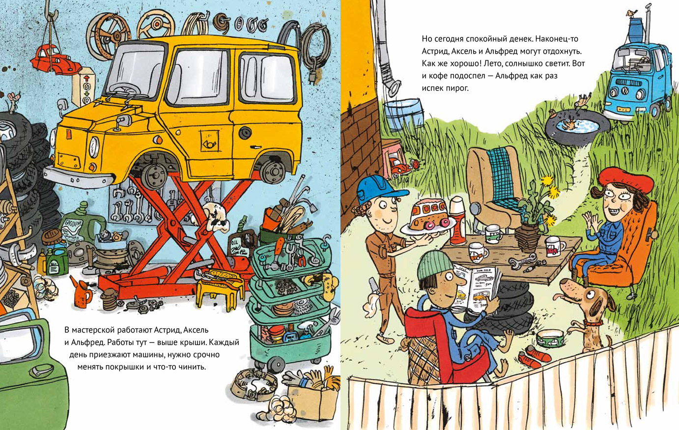 Спустила шина? Двигатель сломался? Разбился новенький автомобиль? Что ж, пора в мастерскую. Астрид, Аксель и Альфред все исправят, а если не смогут — отправят машину на свалку. Но кто же заделает огромную дыру в середине дороги? И как быть, если самому до автомастерской не добраться? Хорошо бы кто-нибудь остановился рядом и спросил: