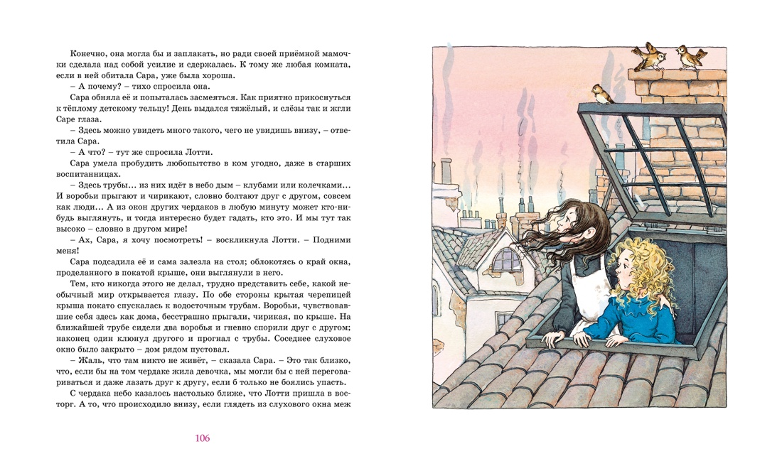 В книге известной англо-американской писательницы Фрэнсис Бёрнетт (1849–1924) рассказана удивительная история семилетней Сары Кру, которая в одночасье из богатой наследницы превратилась в бедную служанку, но в душе всё равно осталась настоящей принцессой с добрым и отважным сердцем, умеющим любить и сострадать. И в награду за её светлую, чистую душу богатство вернулось к ней сторицей.