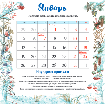 • познакомит с особенностями каждого месяца;