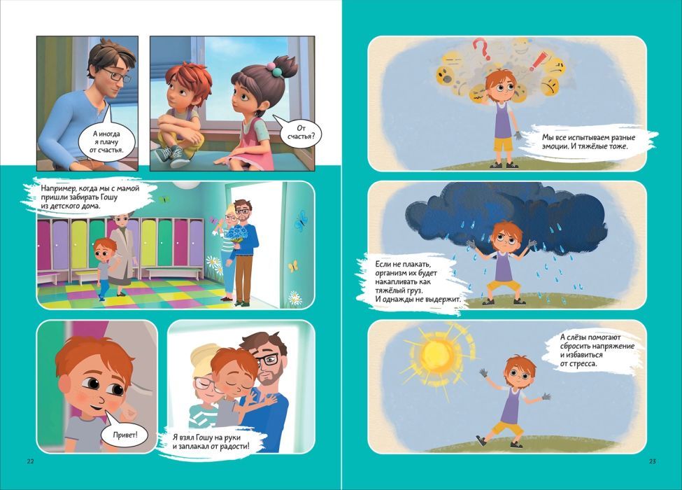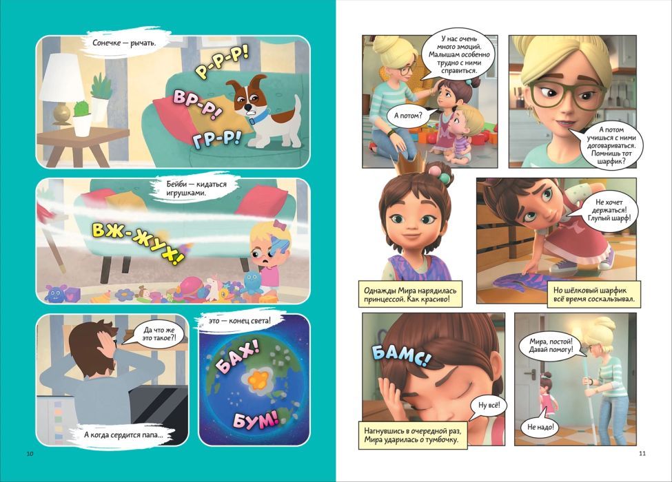 Серия комиксов «Про Миру и Гошу» — это герои любимого мультсериала, которые учатся взаимодействию с окружающим миром и собой. В каждом комиксе размещено 5 историй, связанных одной темой: управление эмоциями, дружба и выстраивание личных границ или создание теплых отношений с близкими. В конце каждой истории размещены комментарии психолога.