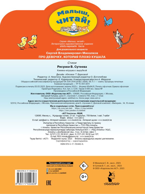 Михалков С.В. Про девочку, которая плохо кушала. Рис. В. Сутеева (Малыш, читай!)