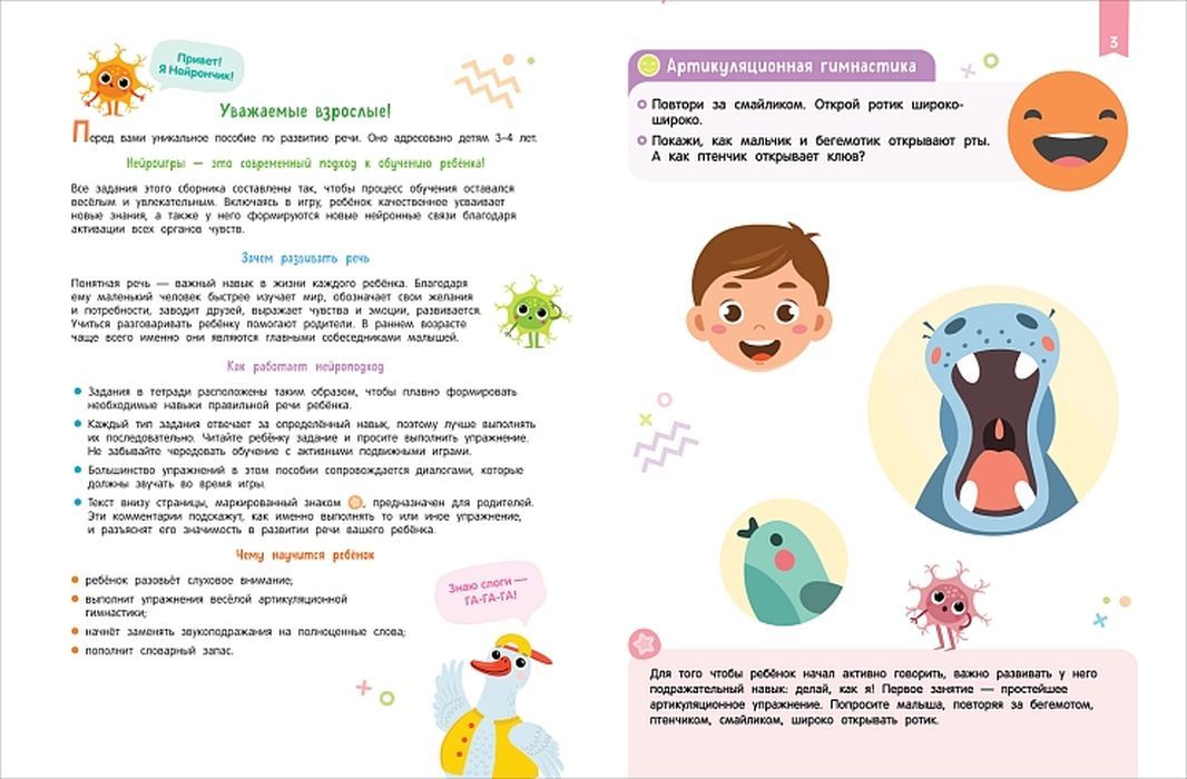 В этом пособии собраны нейроупражнения для детей 3– 4 лет. С их помощью ребенок в легкой игровой форме познакомится с основными звуками и пополнит словарный запас. А современная эффективная нейрометодика поможет ему быстро научиться строить фразы.