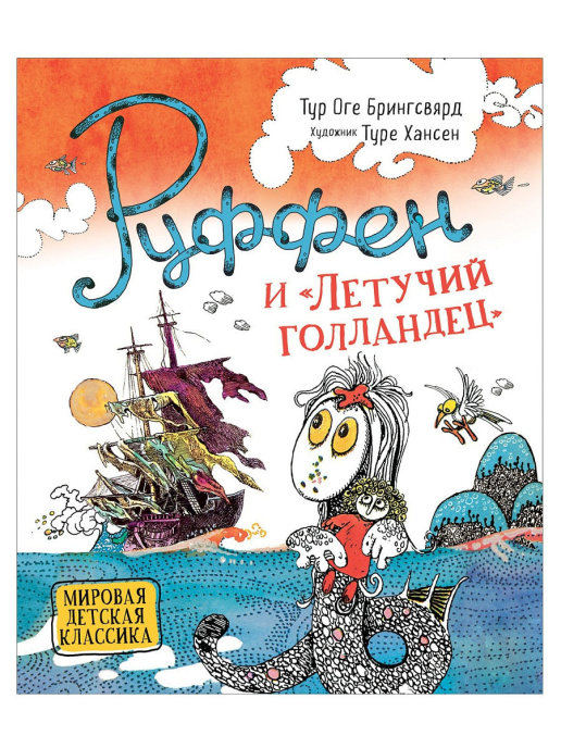 мТур Оге Брингсвярд — очень известный писатель. Он сочиняет книги и для взрослых, и для детей. Но самый знаменитый его герой — Руффен, маленький морской змей. Однажды Руффен увидел корабль-призрак — «Летучий голландец». Все его боятся, считают, что встреча с ним приносит несчастья. Капитан корабля обречен вечно скитаться по морям и океанам. А Руффену жаль Капитана. Отважный морской змей сделает всё возможное, чтобы ему помочь. Более 40 лет очаровательный морской змей Руффен завоевывает сердца читателей со всего мира. Благодаря известной переводчице Ольге Дробот теперь с ним познакомятся и русские читатели. Книги автора переведены более чем на 20 языков.