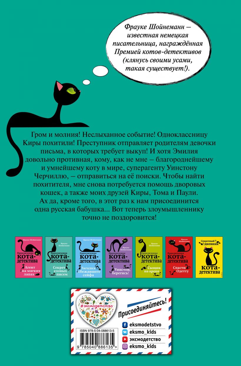 Жизнь кота-детектива не так-то легка. Вместо того чтобы наслаждаться безмятежным сном и отменными деликатесами, Уинстону приходится расследовать новое запутанное преступление. В этот раз случилось невероятное: одноклассницу его подруги Киры Эмилию похитили – и это в самый разгар репетиций школьного спектакля, в котором девочка играла главную роль! Теперь преступник требует выкуп! Детям и дворовым кошкам придётся объединиться, чтобы вывести злоумышленника на чистую воду. Но есть одна проблема… К Кире из России приехала бабушка, которая неустанно следит за внучкой и её котом. Под таким надзором соблюдать секретность ну о-о-очень не просто…