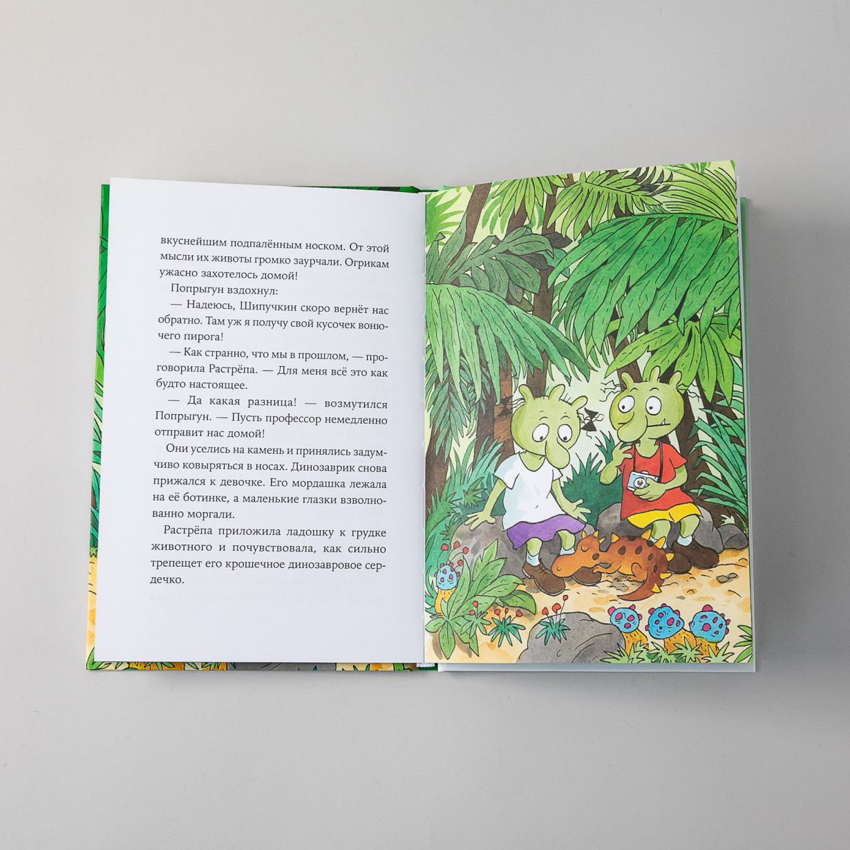 Самая захватывающая история из приключений Огриков! Отправляемся в путешествие во времени вместе с зелёными непоседами. Профессор Шипучкин забросил Огриков далеко-далеко в прошлое, где им предстоит бегать по джунглям в поисках мамы малыша-динозаврика и спасать его от опасного птерозавра.